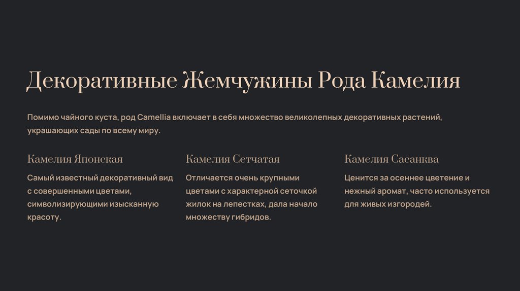 Декоративные Жемчужины Рода КамелияПомимо чайного куста, род Camellia включает в себя множество великолепных декоративных растений,