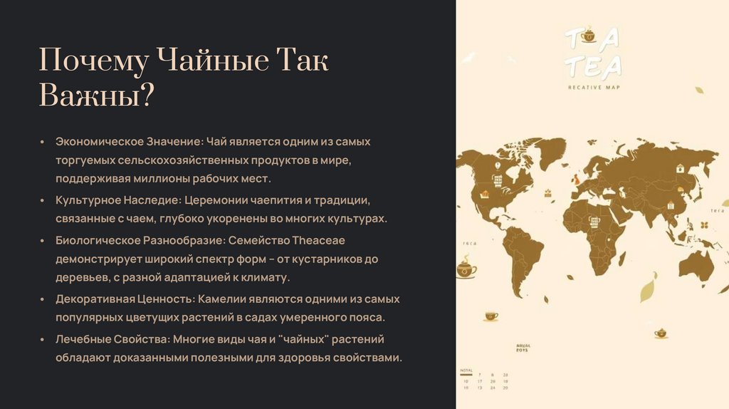 • Лечебные Свойства: Многие виды чая и "чайных" растений