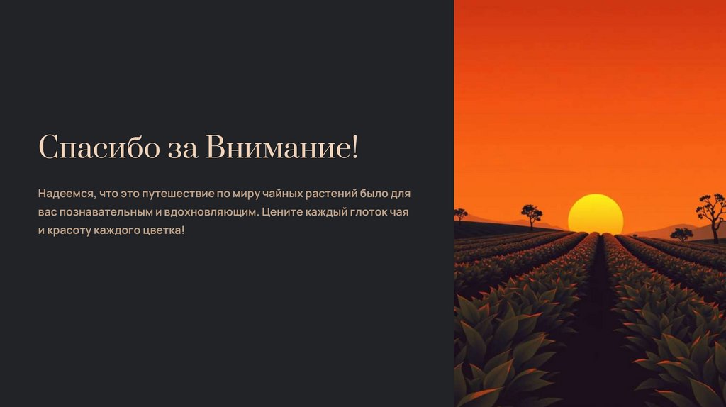 Спасибо за Внимание!Надеемся, что это путешествие по миру чайных растений было для