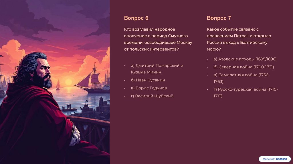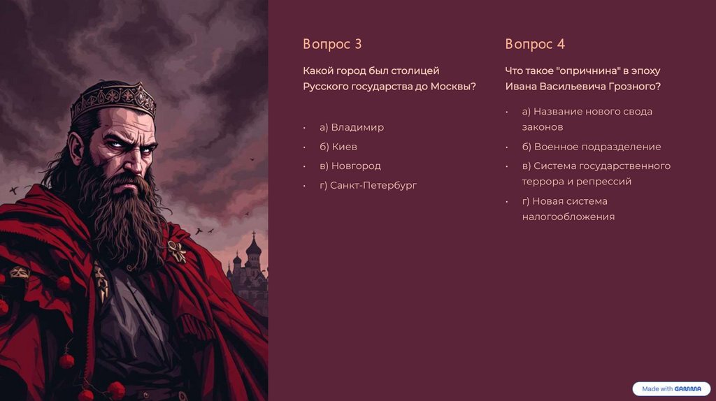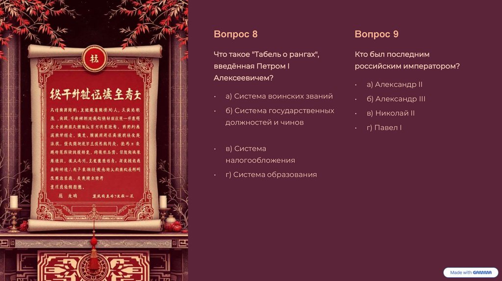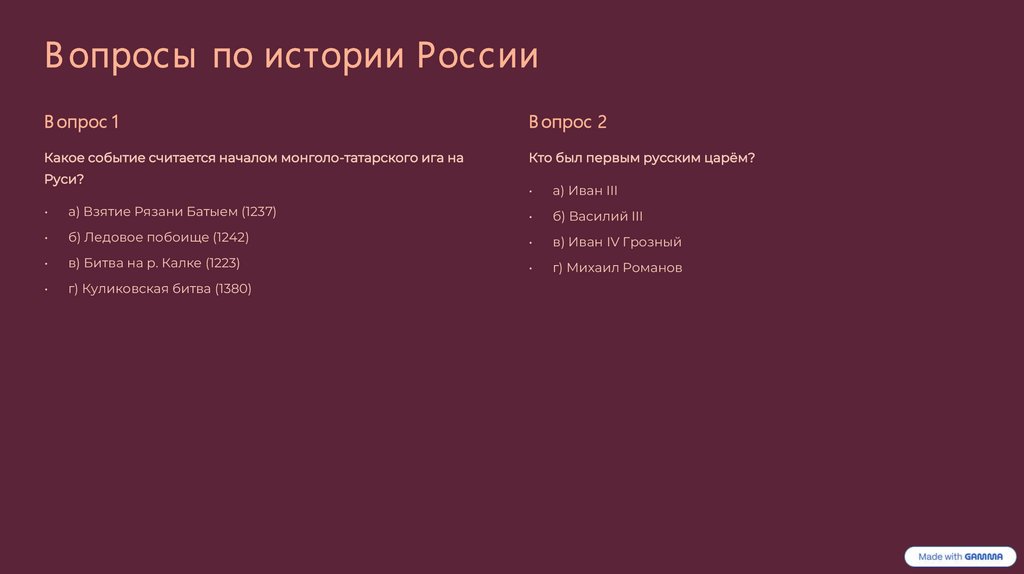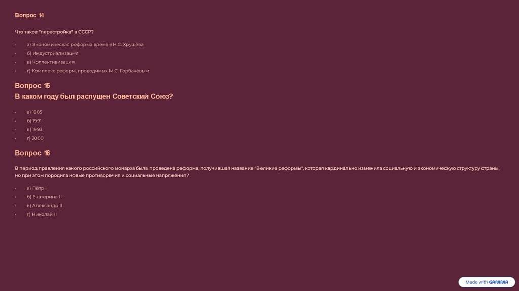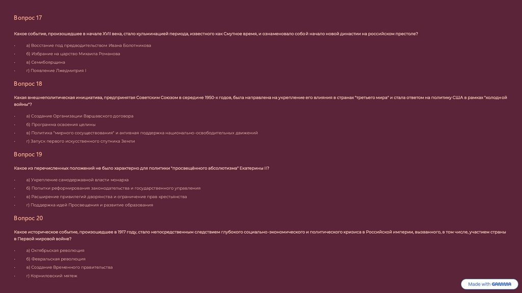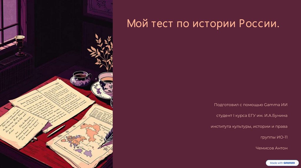 Мой тест по истории России.Подготовил с помощью Gamma ИИ