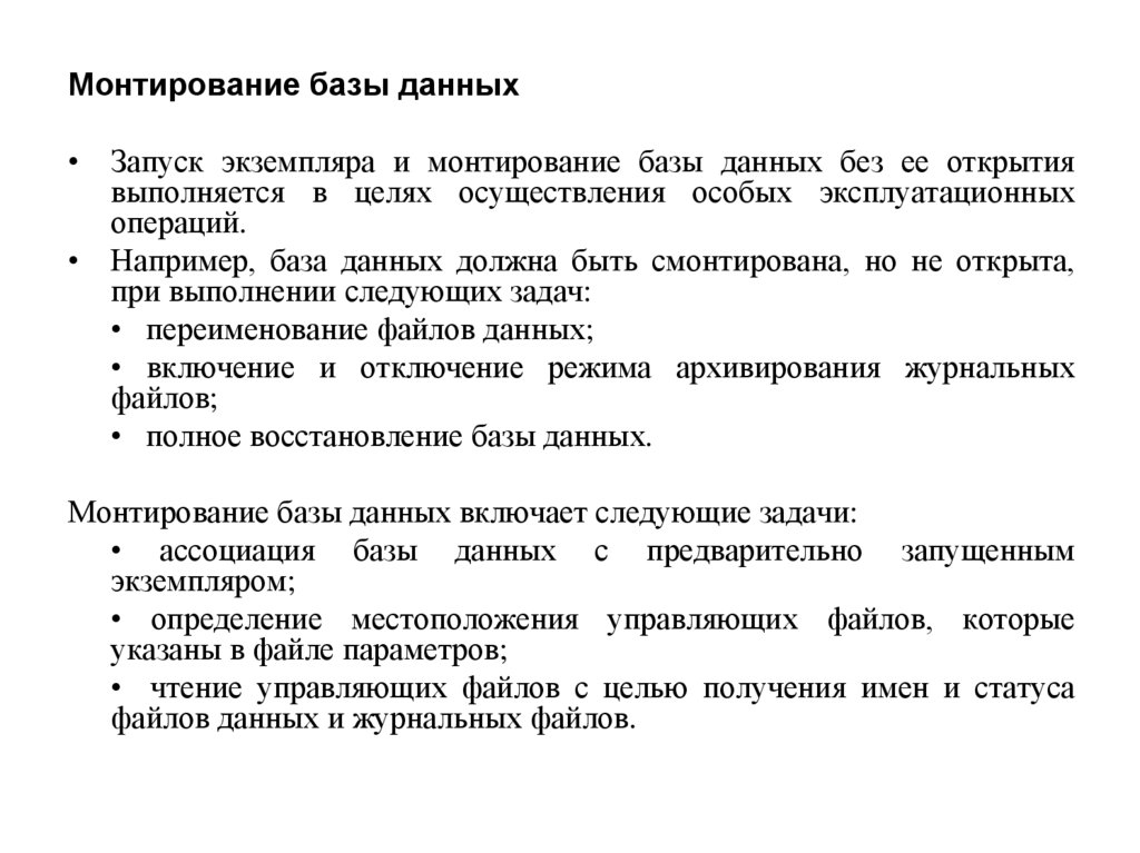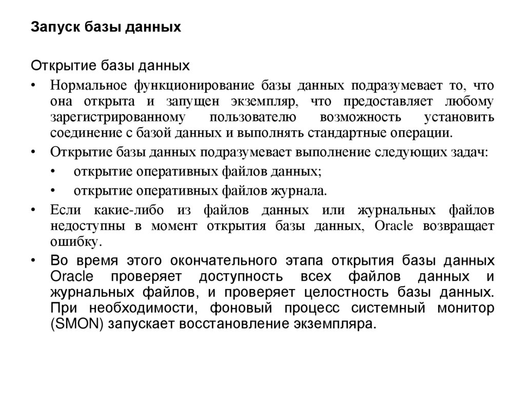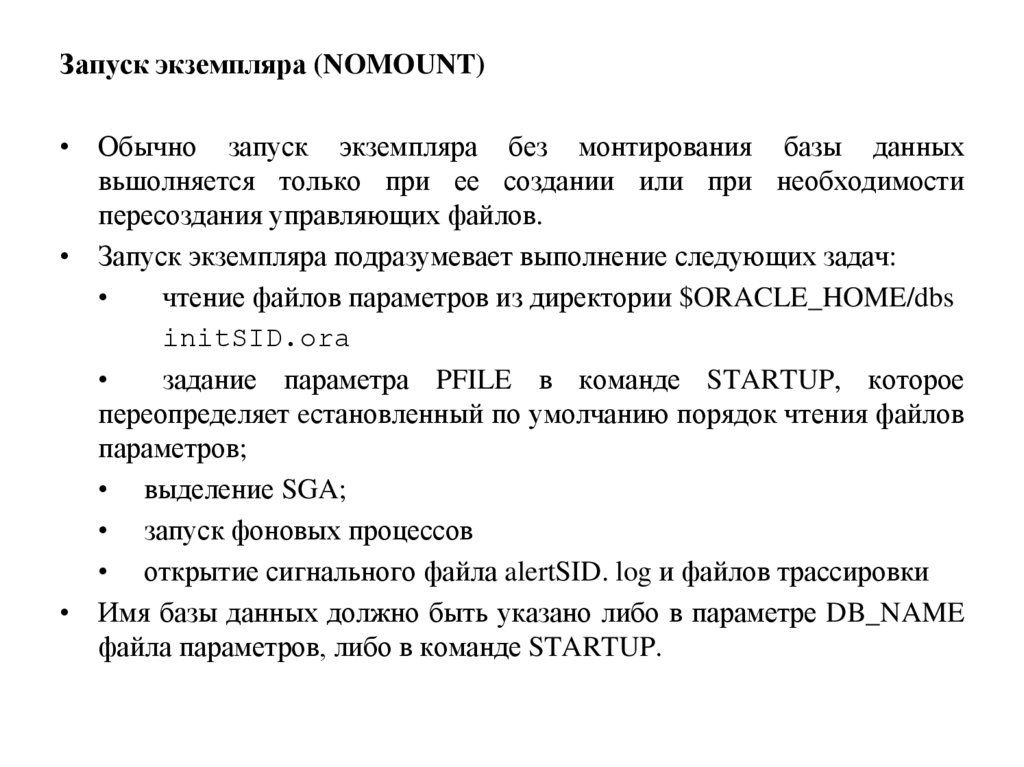 Чтобы запустить экземпляр, сервер Oracle должен прочитать файлпараметров инициализации.