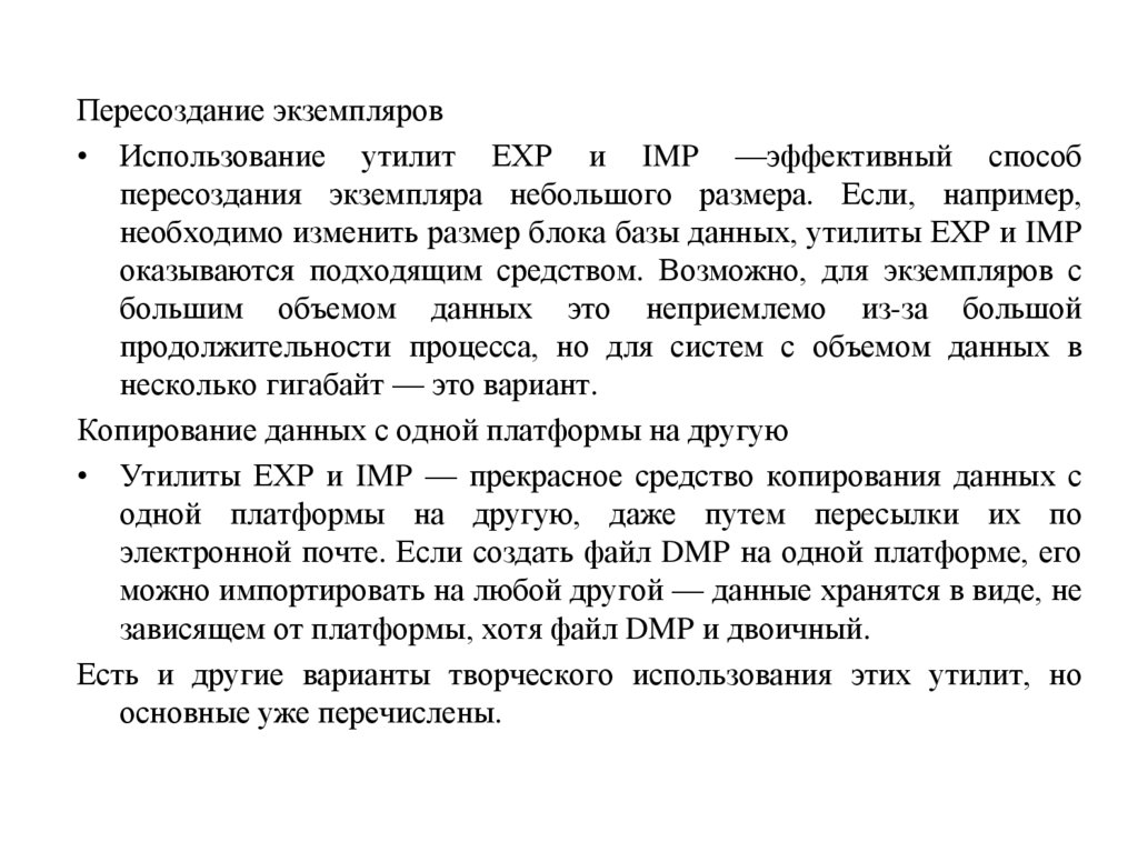 • Утилиты ЕХР и IMP — прекрасное средство копирования данных с