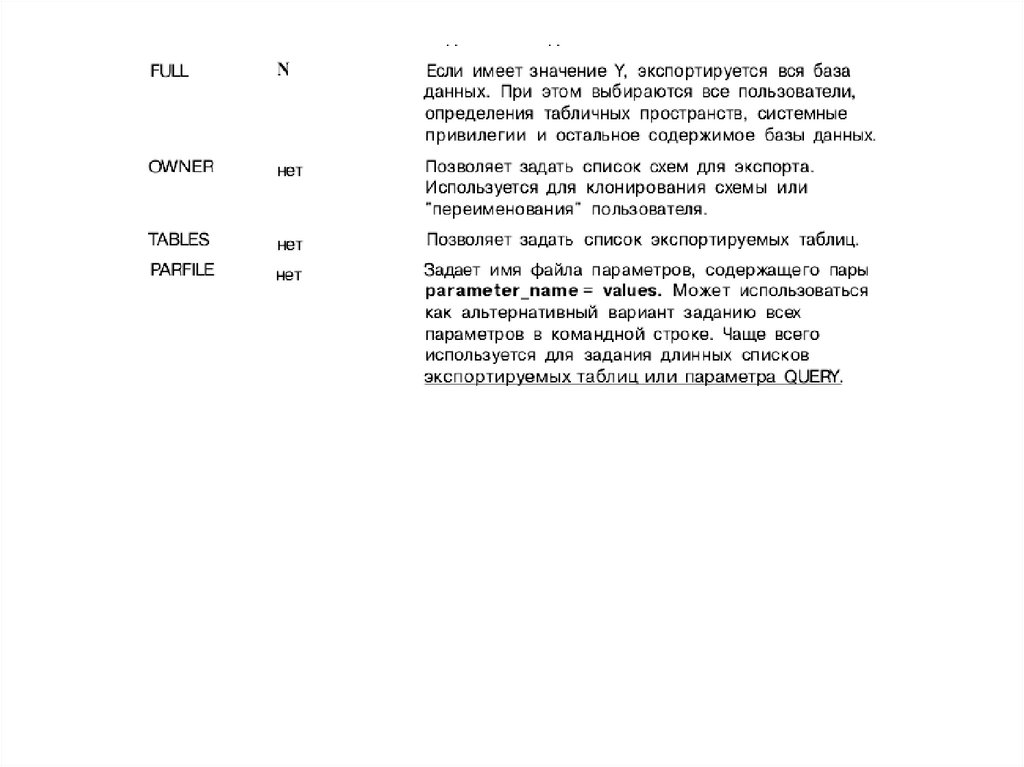 • Параметры для утилит ЕХР и IMP задаются в виде пар имя-значение.Используется такой вызов: