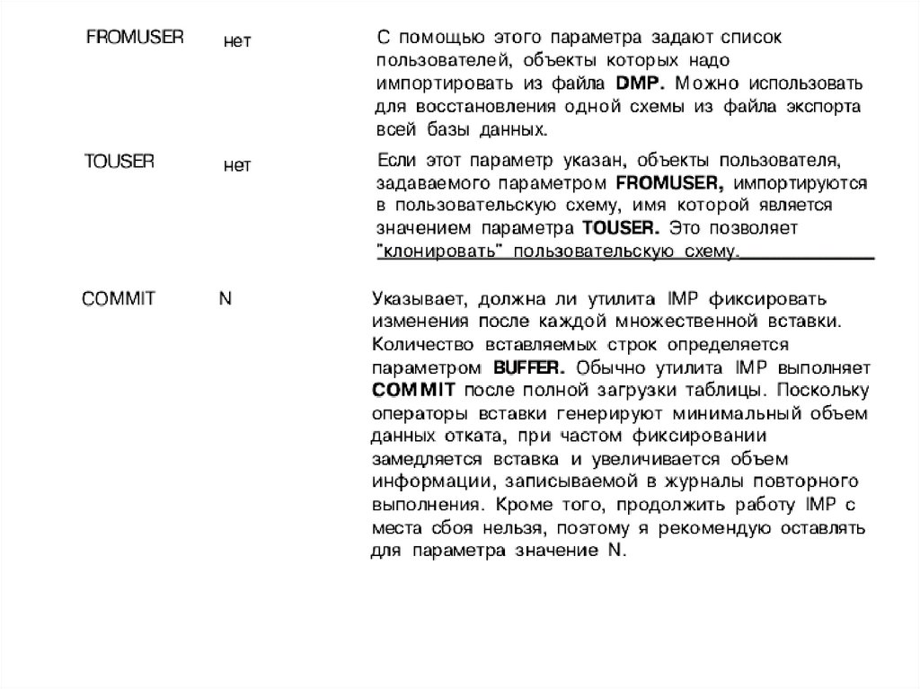 • Опции утилит IMP и ЕХР можно задавать в файле параметров, чтобы