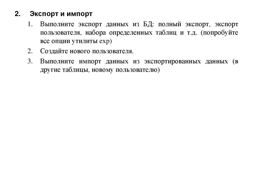 1. Выполните экспорт данных из БД: полный экспорт, экспорт