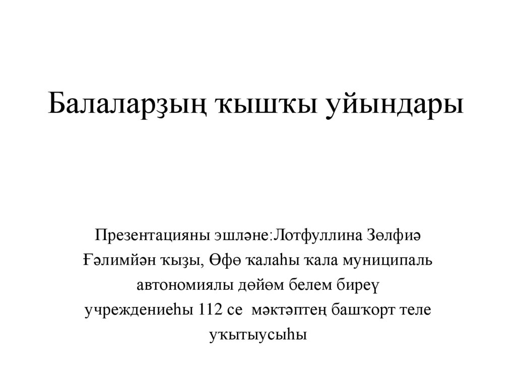 Презентацияны эшләне:Лотфуллина ЗөлфиәҒәлимйән ҡыҙы, Өфө ҡалаһы ҡала муниципаль