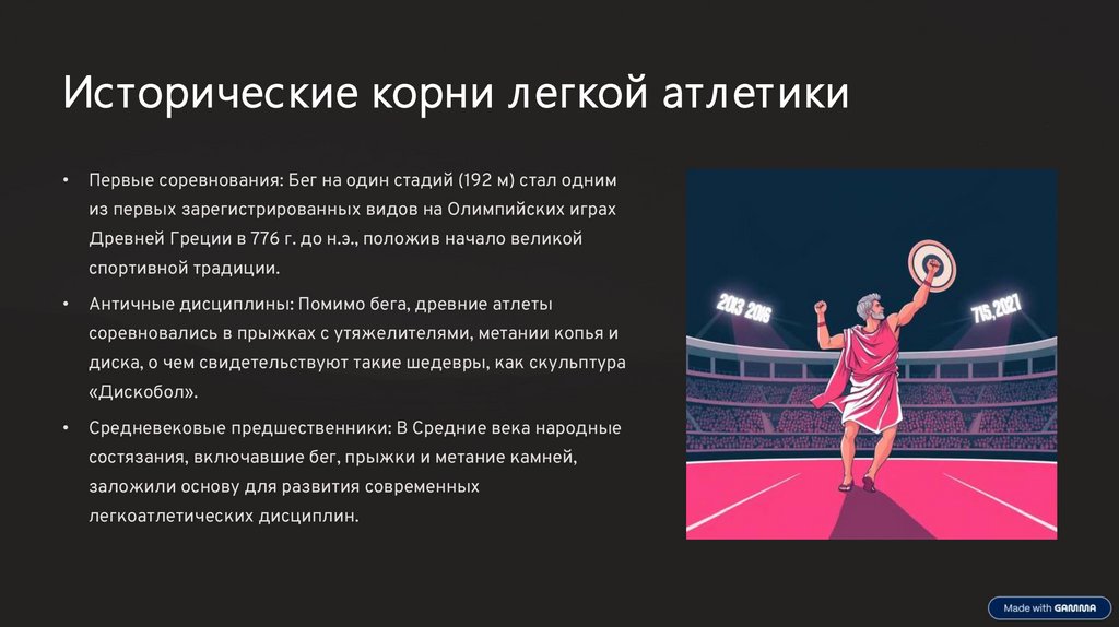 Исторические корни легкой атлетикиПервые соревнования: Бег на один стадий (192 м) стал одним