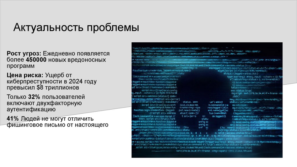Актуальность проблемыРост угроз: Ежедневно появляется
