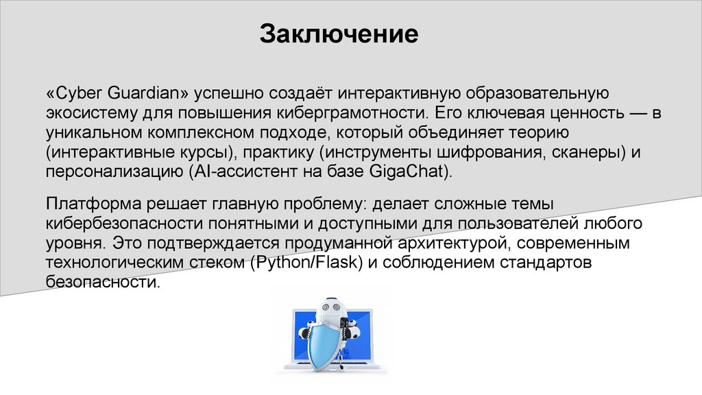 Заключение«Cyber Guardian» успешно создаёт интерактивную образовательную