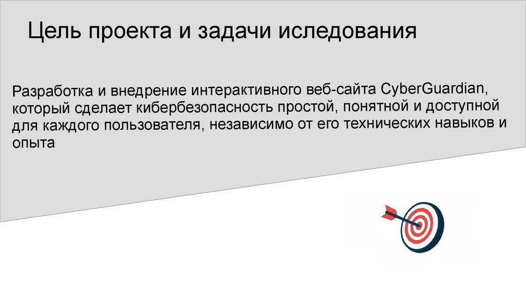 Цель проекта и задачи иследованияРазработка и внедрение интерактивного веб-сайта CyberGuardian,