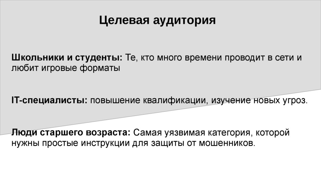 Целевая аудиторияШкольники и студенты: Те, кто много времени проводит в сети и