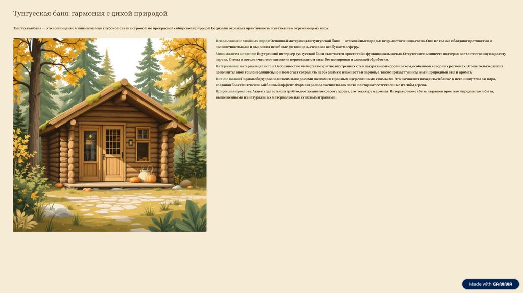 идее бани как места для оздоровления и отдыха в естественной среде.