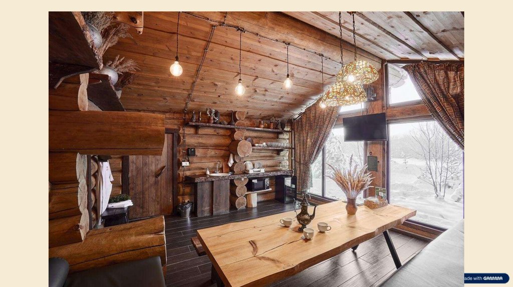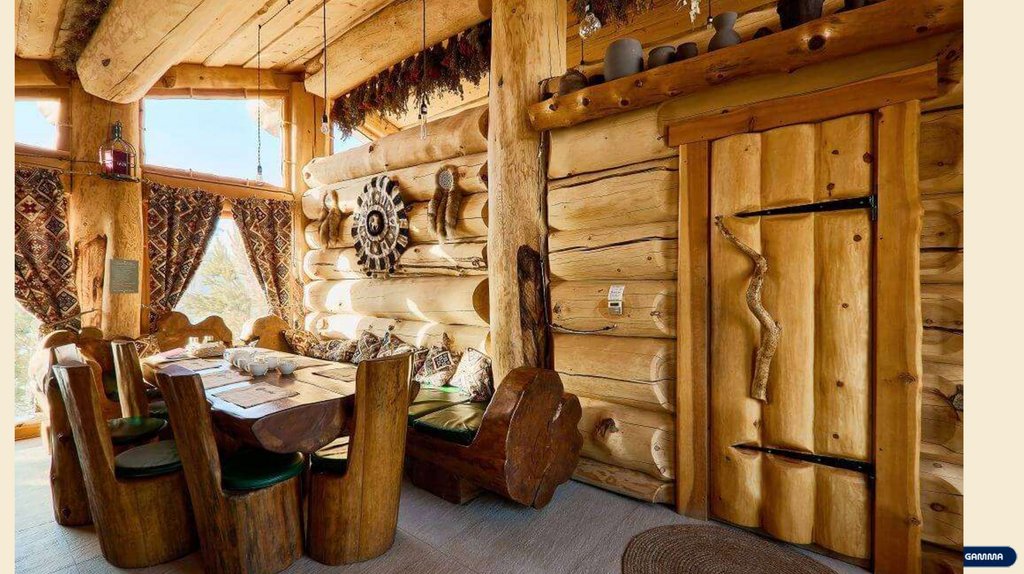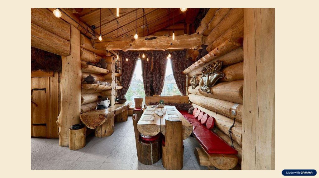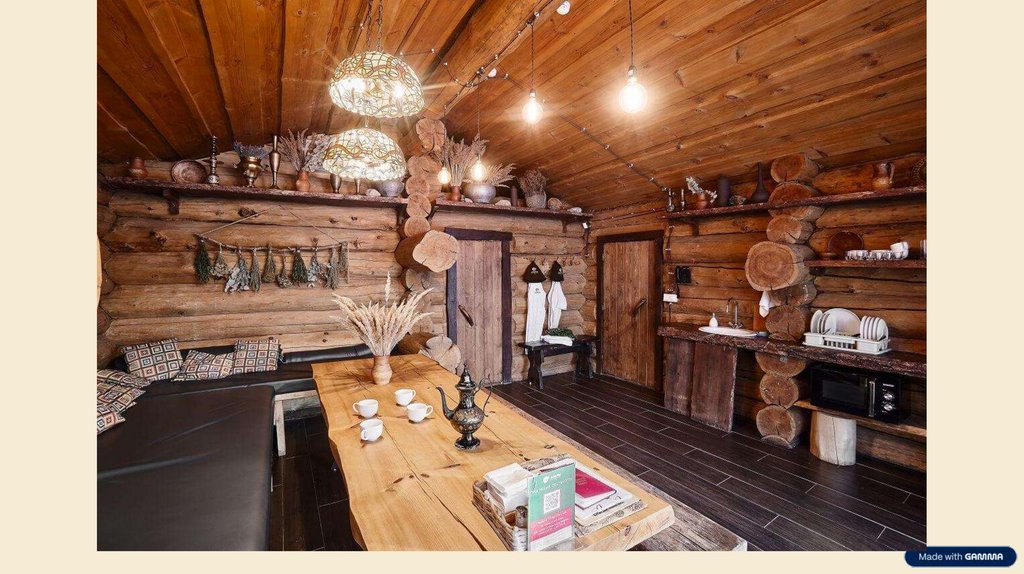 Природная простота: Акцент делается на грубую, неотесанную красоту дерева, его текстуру и аромат. Интерьер может быть украшен простыми предметами быта,