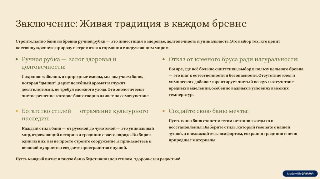 Заключение: Живая традиция в каждом бревнеСтроительство бани из бревна ручной рубки — это инвестиция в здоровье, долговечность и уникальность. Это выбор тех, кто ценит