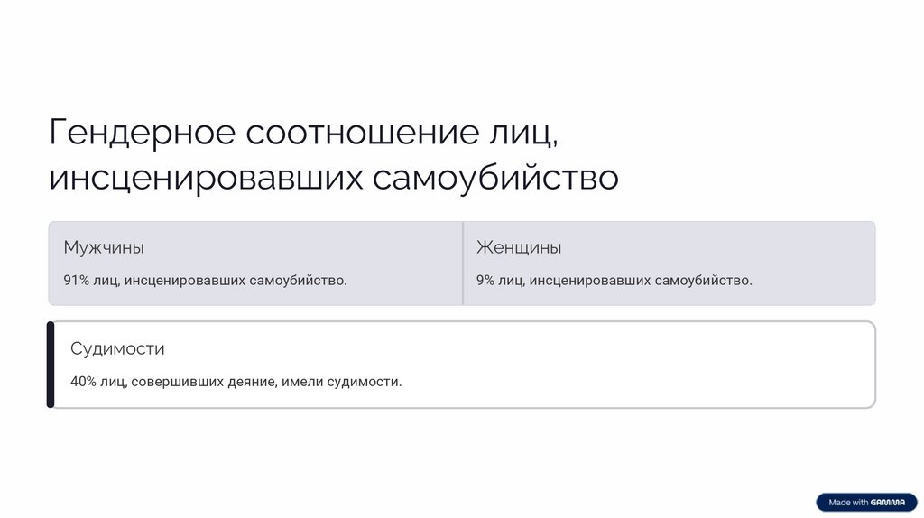 Гендерное соотношение лиц,инсценировавших самоубийство