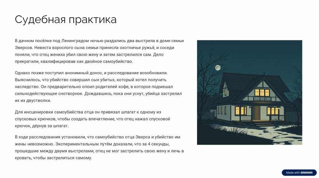 Судебная практикаВ дачном посёлке под Ленинградом ночью раздались два выстрела в доме семьи
