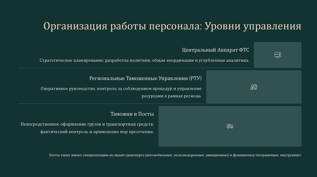 Организация работы персонала: Уровни управленияЦентральный Аппарат ФТС