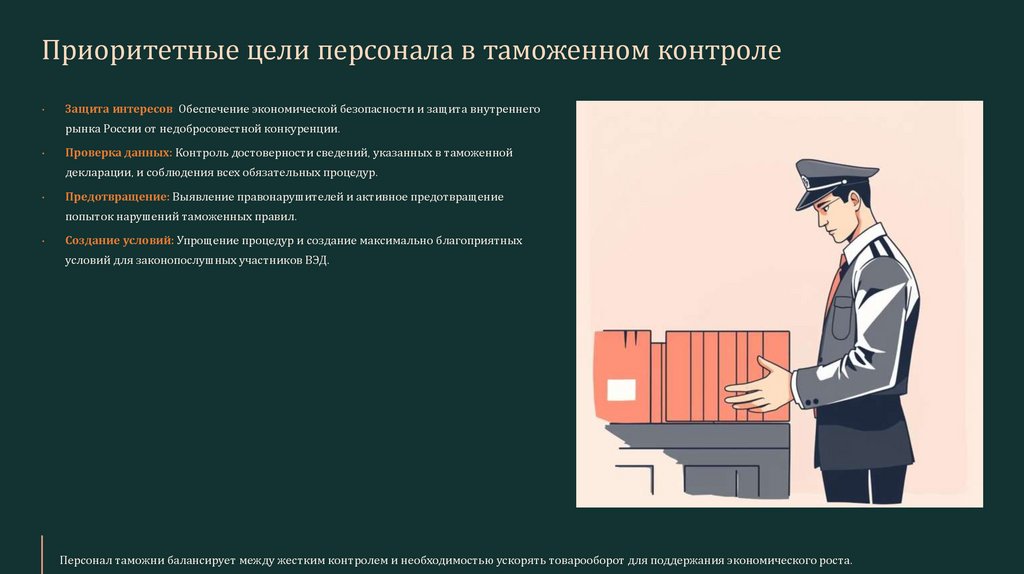 Приоритетные цели персонала в таможенном контролеЗащита интересов: Обеспечение экономической безопасности и защита внутреннего