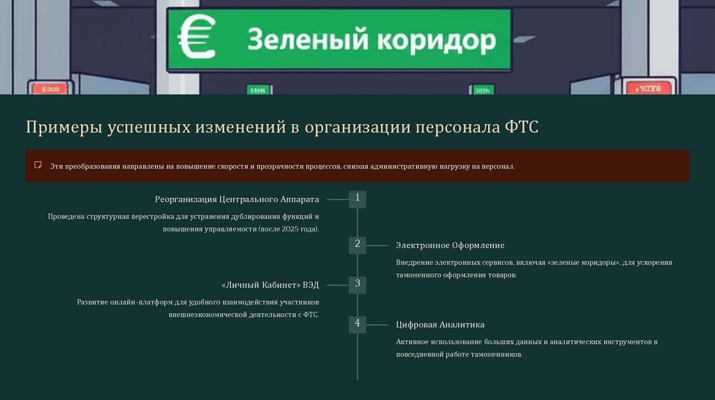 Примеры успешных изменений в организации персонала ФТСЭти преобразования направлены на повышение скорости и прозрачности процессов, снижая административную нагрузку на персонал.