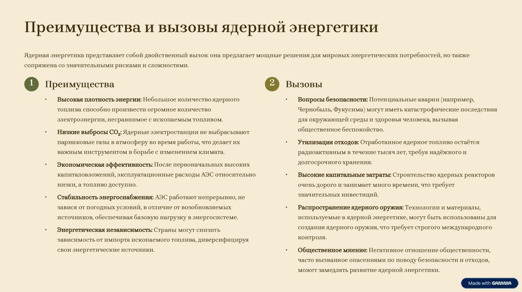 Преимущества и вызовы ядерной энергетикиЯдерная энергетика представляет собой двойственный вызов: она предлагает мощные решения для мировых энергетических потребностей, но также