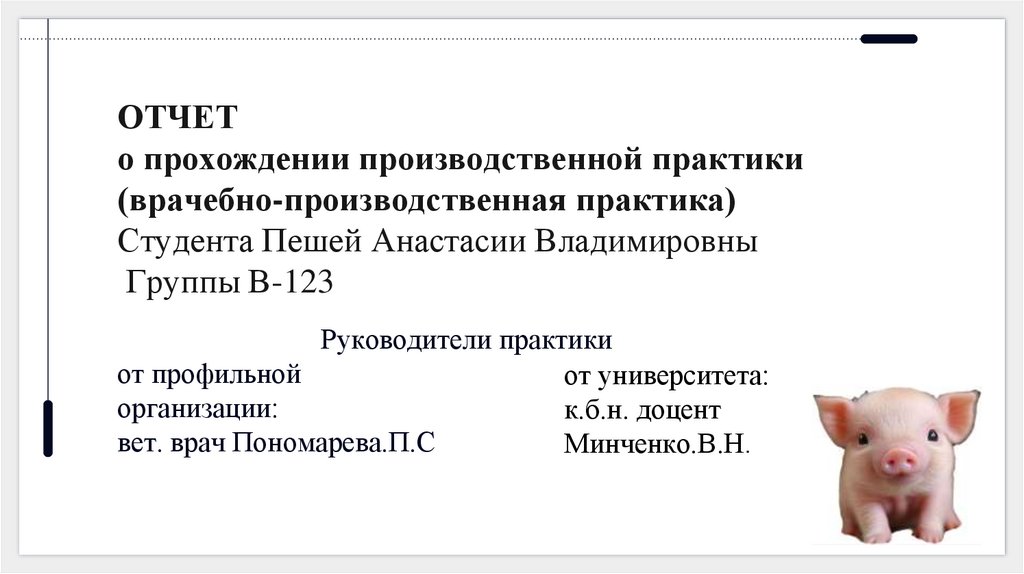 1. ОТЧЕТ о прохождении производственной практики (врачебно-производственная практика) Студента Пешей Анастасии Владимировны Группы