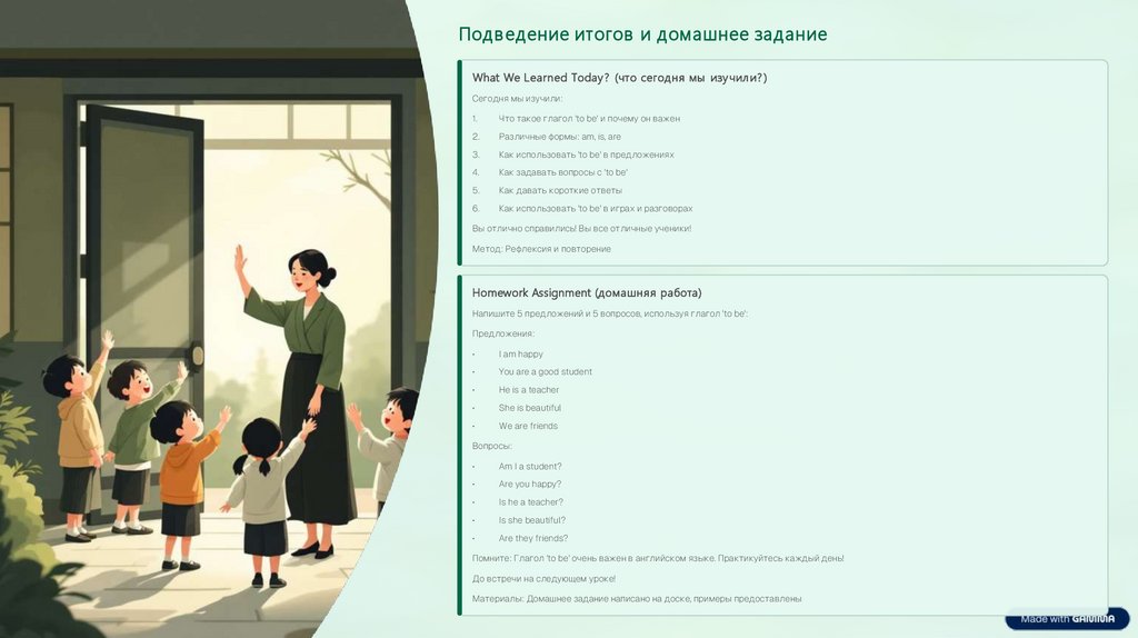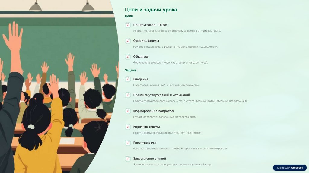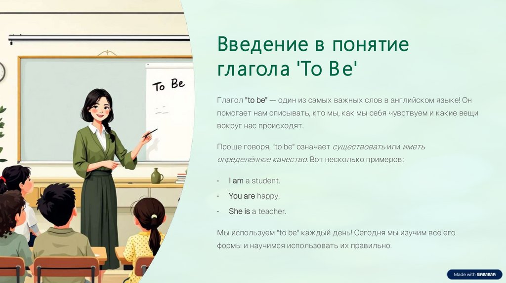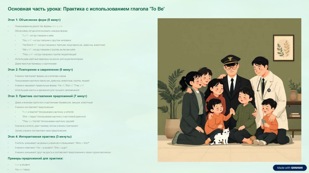 Основная часть урока: Практика с использованием глагола 'To Be'Этап 1: Объяснение форм (5 минут)