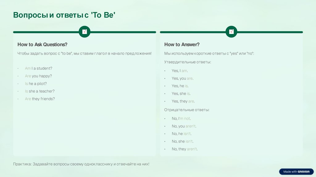 Вопросы и ответы с 'To Be'How to Ask Questions?