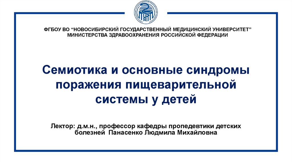 Лектор: д.м.н., профессор кафедры пропедевтики детских