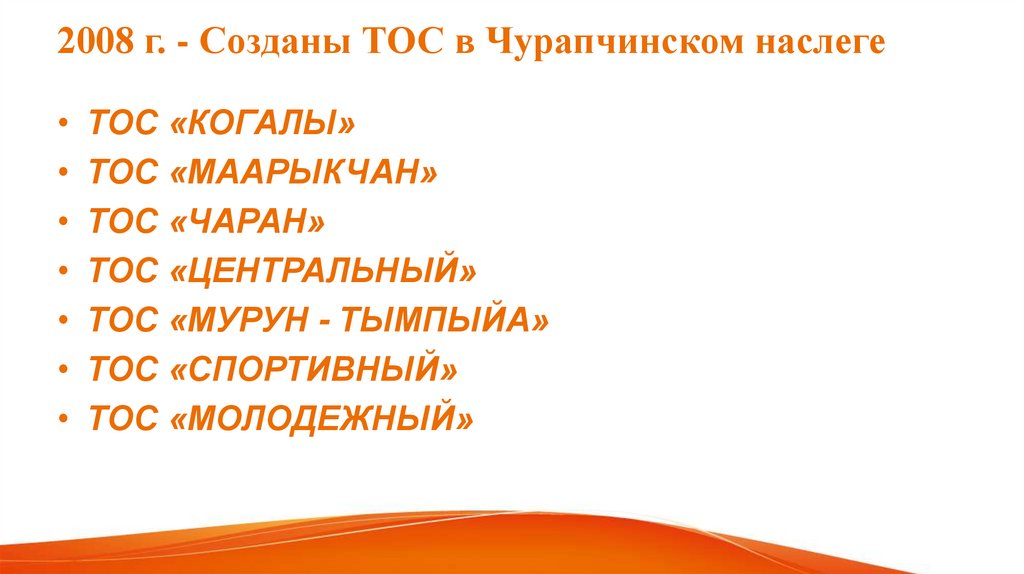 2008 г. - Созданы ТОС в Чурапчинском наслеге• ТОС «КОГАЛЫ»