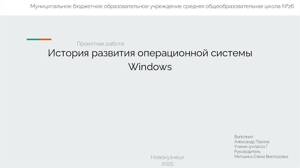 Муниципальное бюджетное образовательное учреждение средняя общеобразовательная школа №26Проектная работа