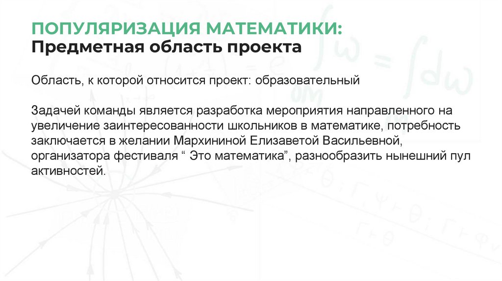 ПОПУЛЯРИЗАЦИЯ МАТЕМАТИКИ:Предметная область проекта