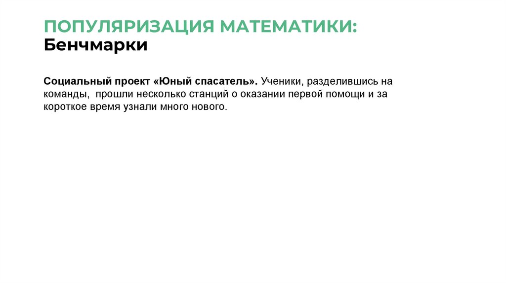 ПОПУЛЯРИЗАЦИЯ МАТЕМАТИКИ:Бенчмарки