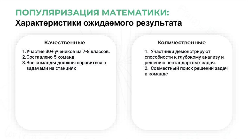ПОПУЛЯРИЗАЦИЯ МАТЕМАТИКИ:Характеристики ожидаемого результата