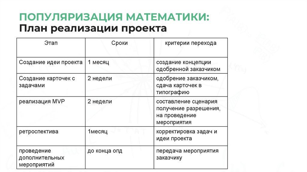 ПОПУЛЯРИЗАЦИЯ МАТЕМАТИКИ:План реализации проекта