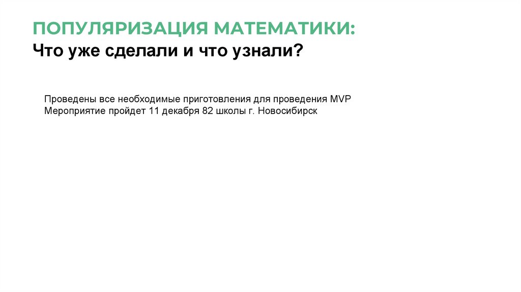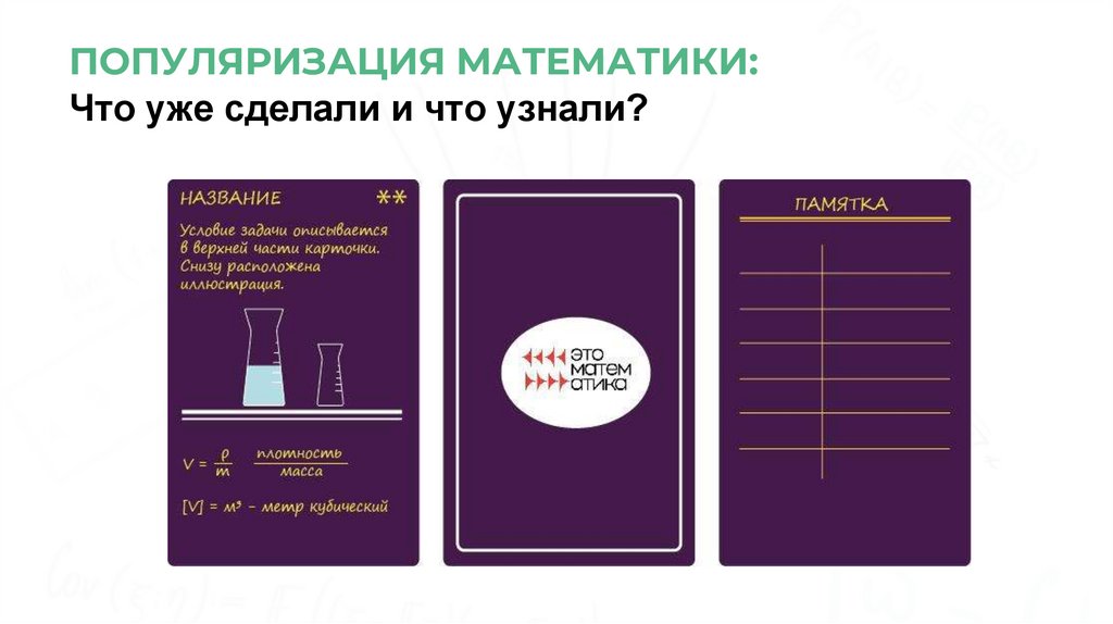 ПОПУЛЯРИЗАЦИЯ МАТЕМАТИКИ:Что уже сделали и что узнали?