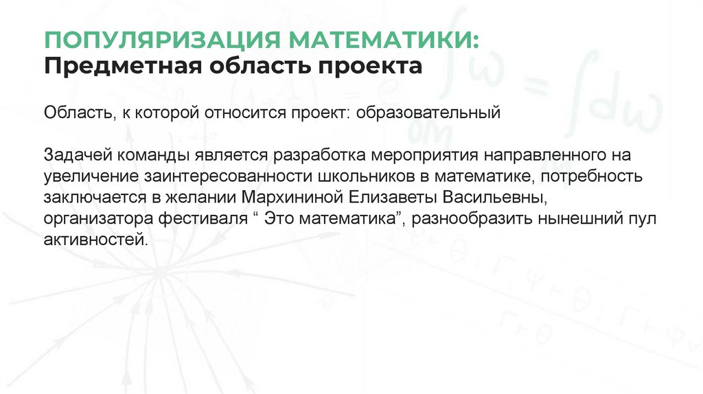 ПОПУЛЯРИЗАЦИЯ МАТЕМАТИКИ:Предметная область проекта