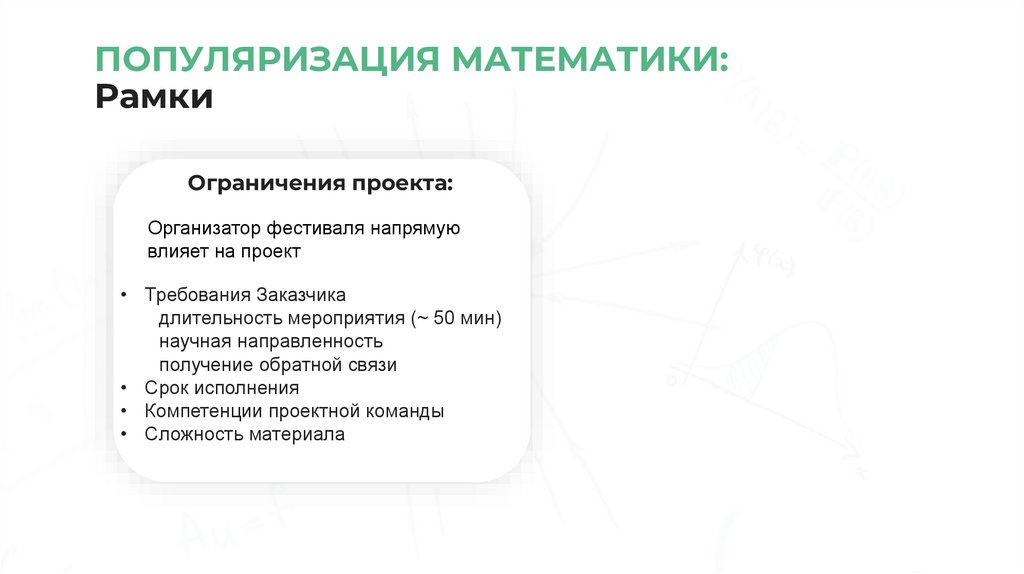 ПОПУЛЯРИЗАЦИЯ МАТЕМАТИКИ:Рамки