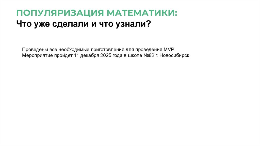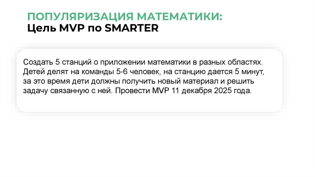 ПОПУЛЯРИЗАЦИЯ МАТЕМАТИКИ:Цель MVP по SMARTER