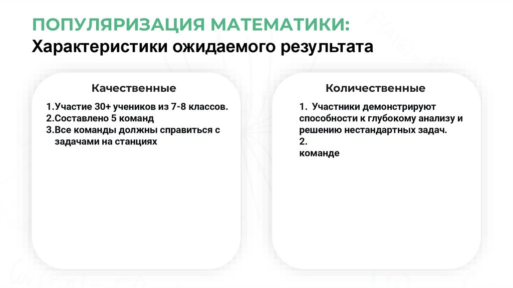 ПОПУЛЯРИЗАЦИЯ МАТЕМАТИКИ:Характеристики ожидаемого результата