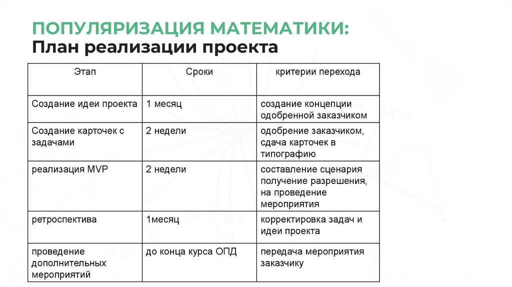 ПОПУЛЯРИЗАЦИЯ МАТЕМАТИКИ:План реализации проекта