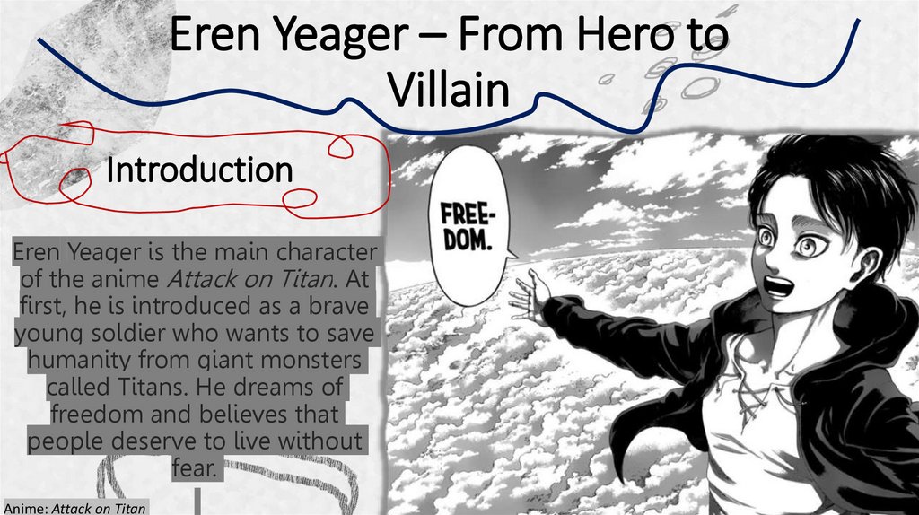In the beginning, Eren looks like a typical hero. He fights forjustice and protects his friends. But as the story continues, he