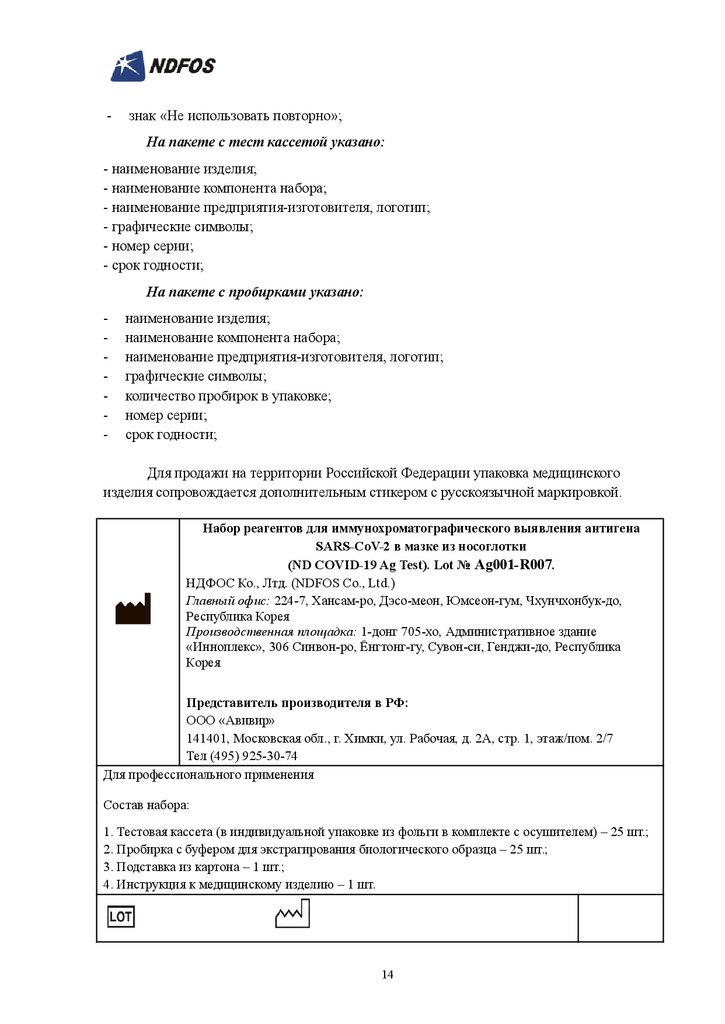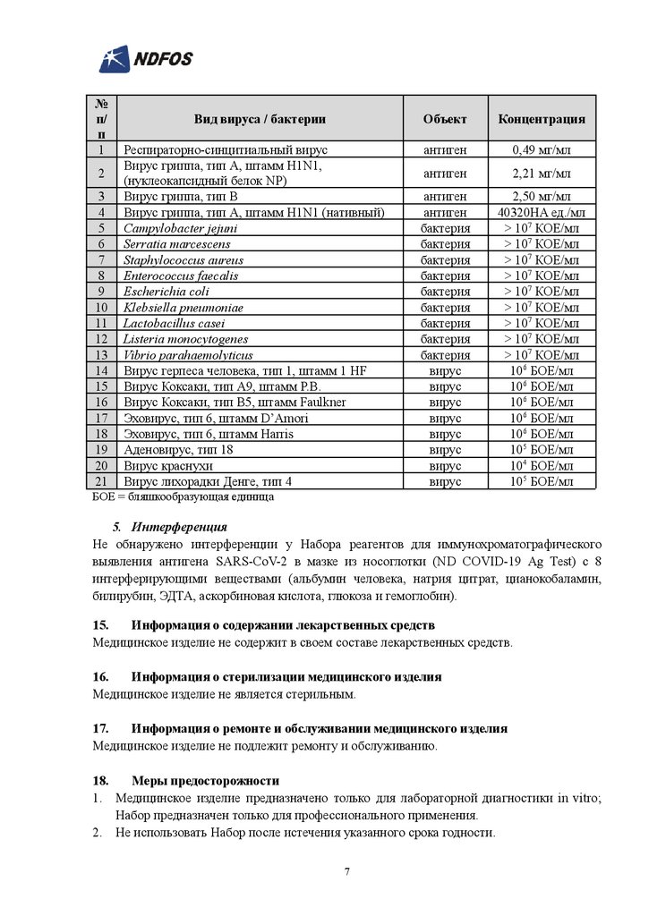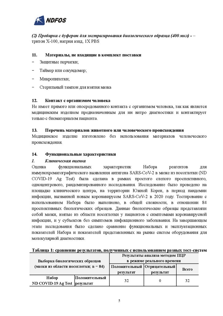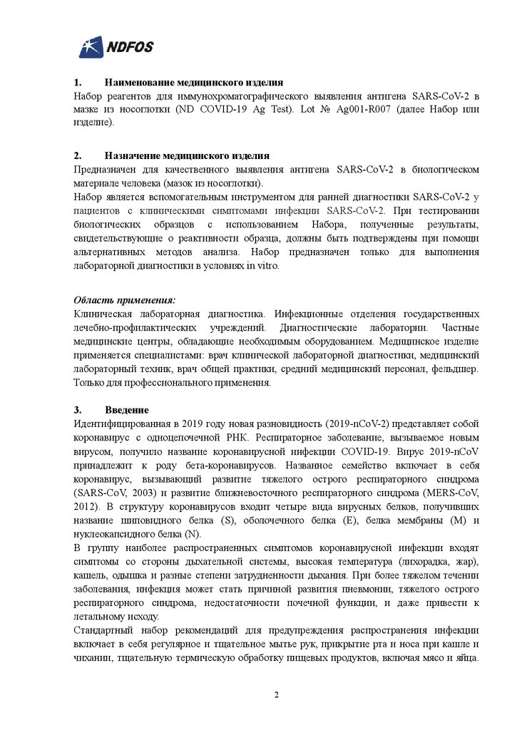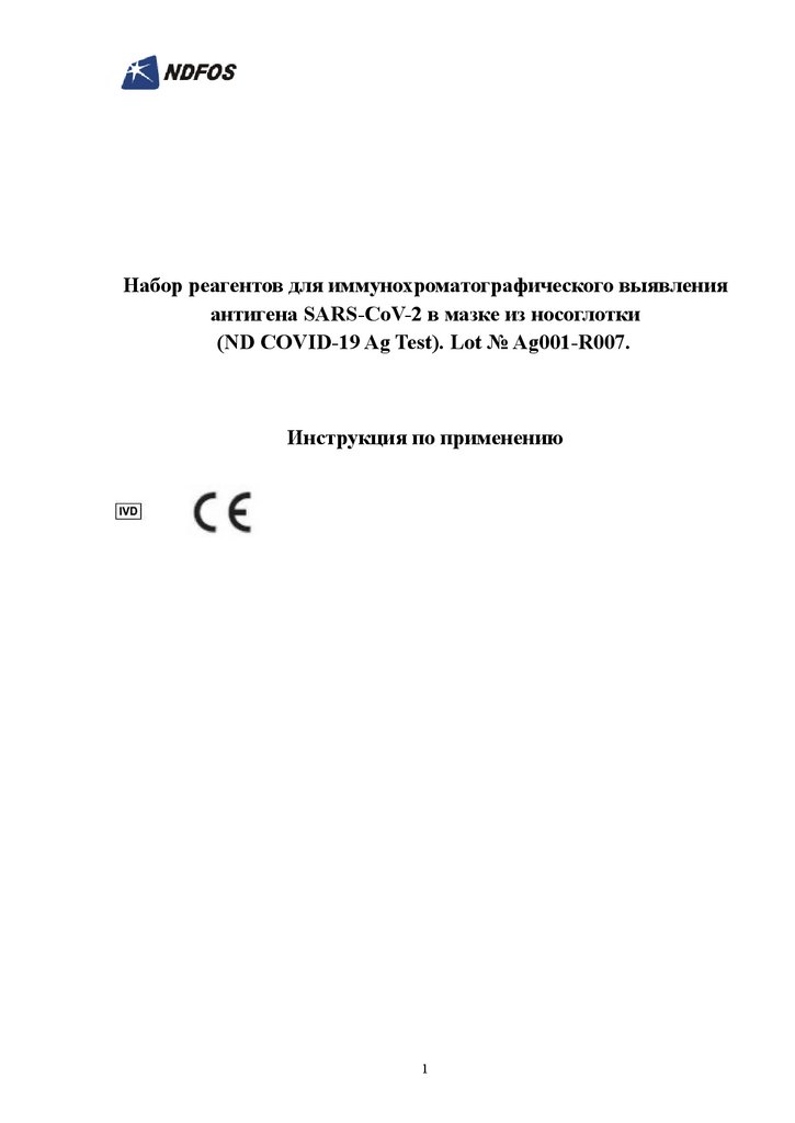 мазке из носоглотки (ND COVID-19 Ag Test). Lot № Ag001-R007 (далее Набор или