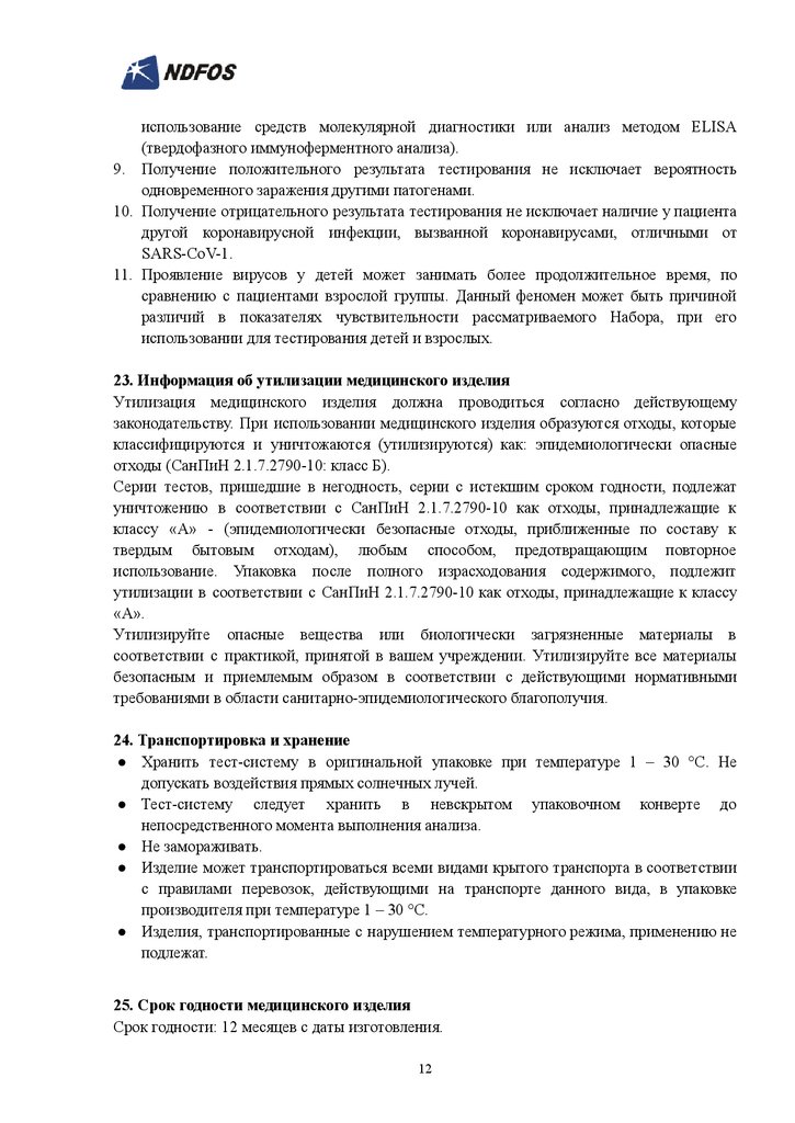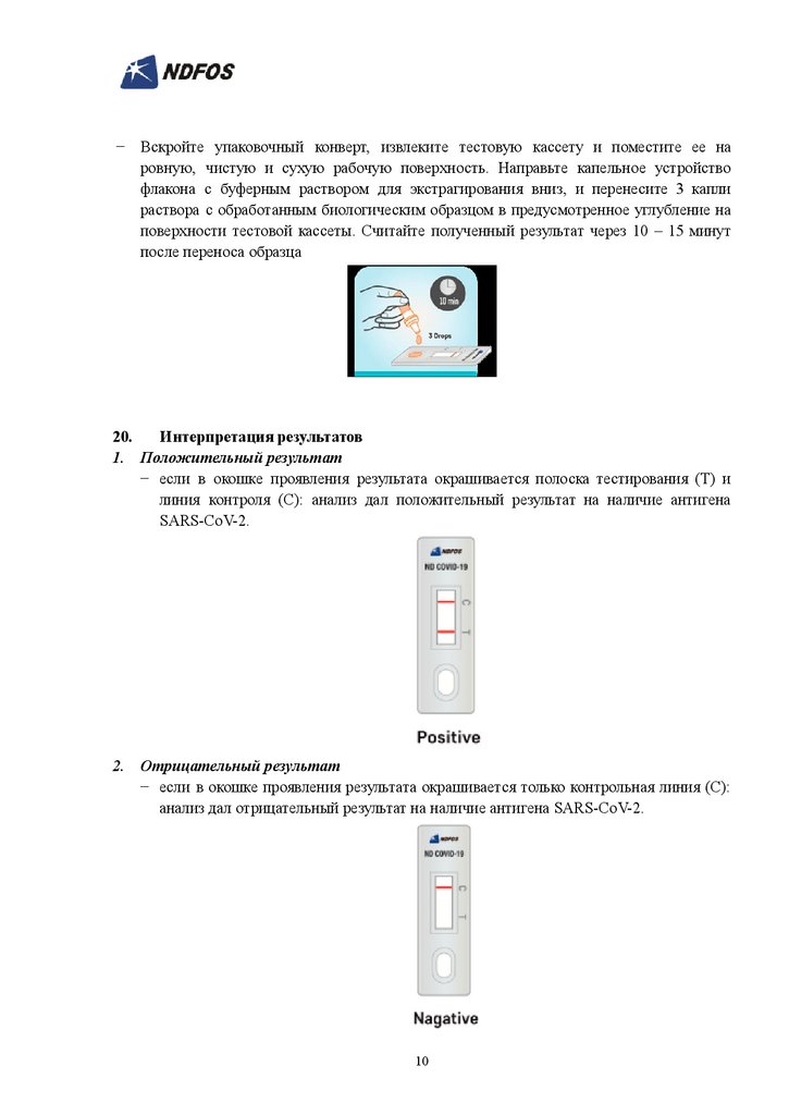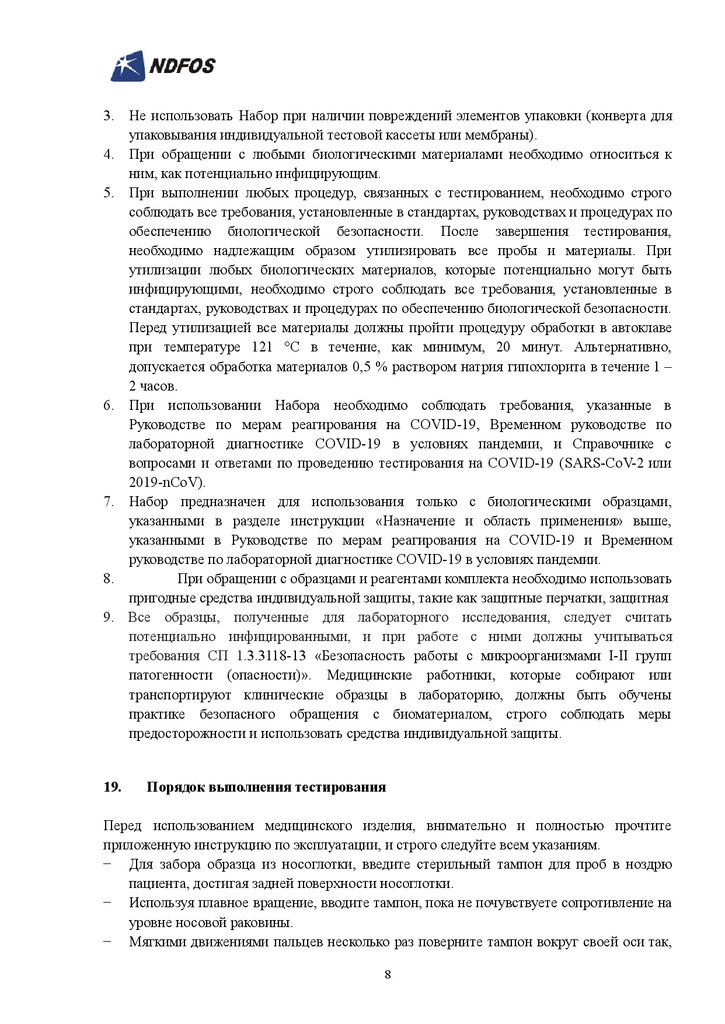 выявления антигена SARS-CoV-2 в мазке из носоглотки (ND COVID-19 Ag Test) с 8