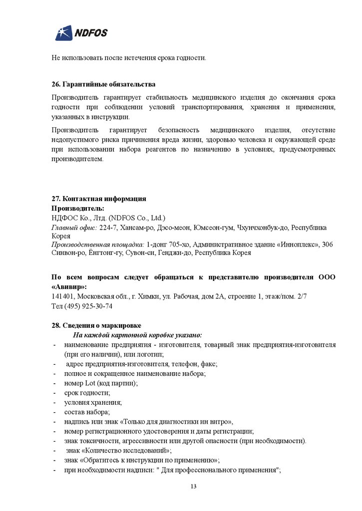 1. Медицинское изделие предназначено только для лабораторной диагностики in vitro;