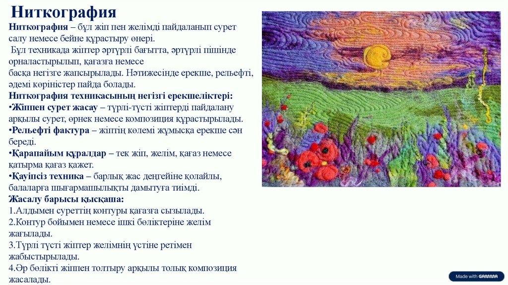 НиткографияНиткография – бұл жіп пен желімді пайдаланып сурет