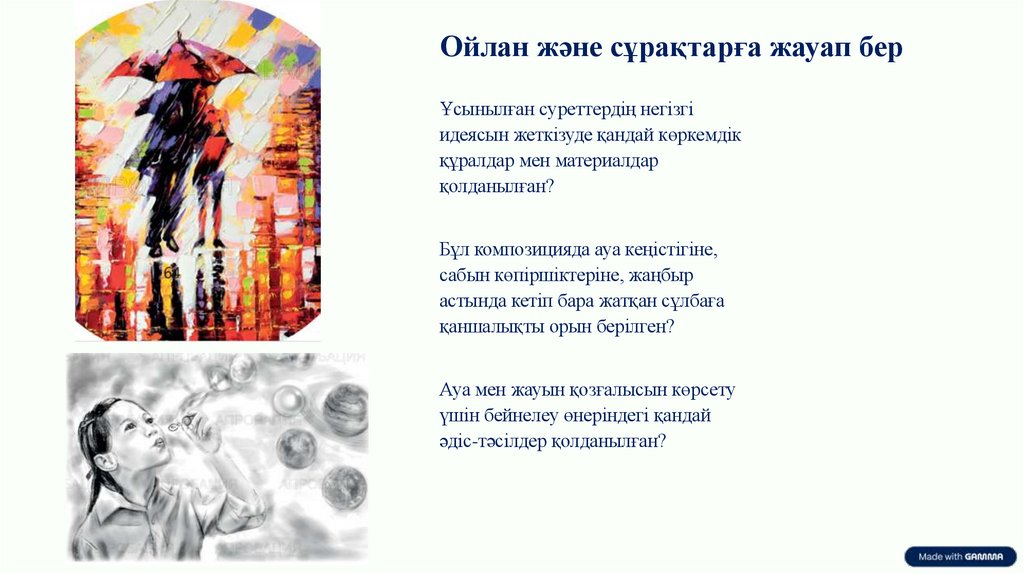 Ойлан және сұрақтарға жауап берҰсынылған суреттердің негізгі