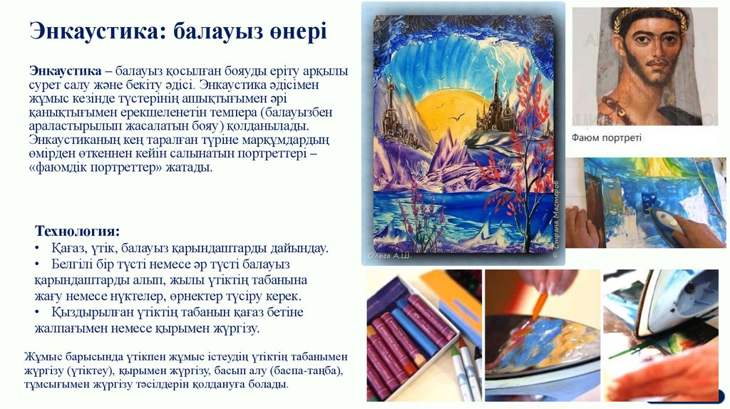Энкаустика: балауыз өнеріЭнкаустика – балауыз қосылған бояуды еріту арқылы