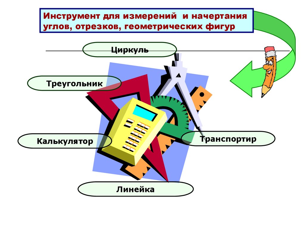Инструмент для измерений и начертанияуглов, отрезков, геометрических фигур
