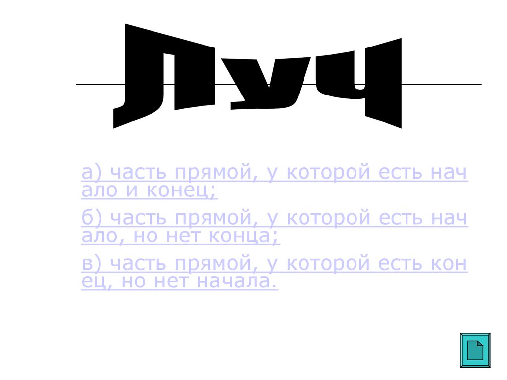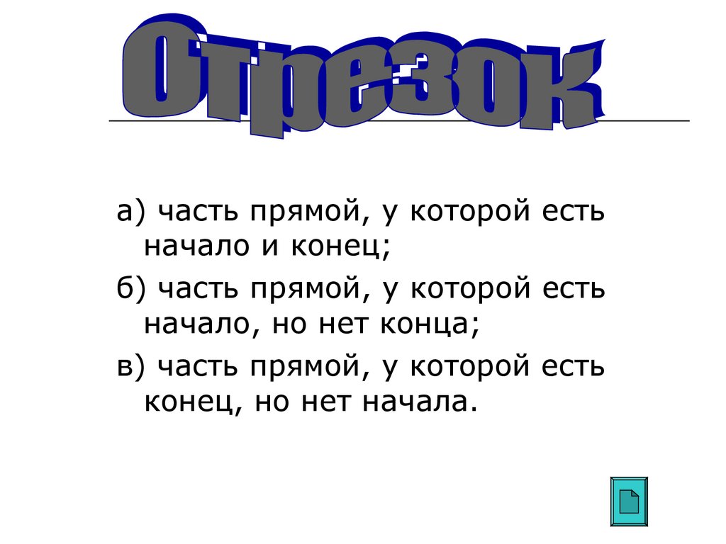 а) Часть прямой,ограниченнойдвумя точками, называется