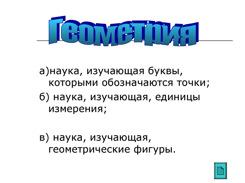 а)наука, изучающая буквы,которыми обозначаются точки;